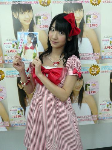 人気アイドルグループ「AKB48」の柏木由紀(18)が28日、初DVD「以上、グアムから柏木由紀でしたっ」の発売記念イベントを都内で行った。