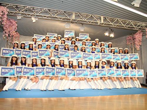 国民的アイドルユニット「AKB48」にライバル出現!?健康食品・医薬品などの製造メーカー「アサヒフードアンドヘルスケア」は2日、都内でシュガーレスミントタブレット「ミンティア」の2010年度新CM発表会を行い、全国47都道府県の美少女47人で結成された「ミンティアガールズ」を初お披露目した。