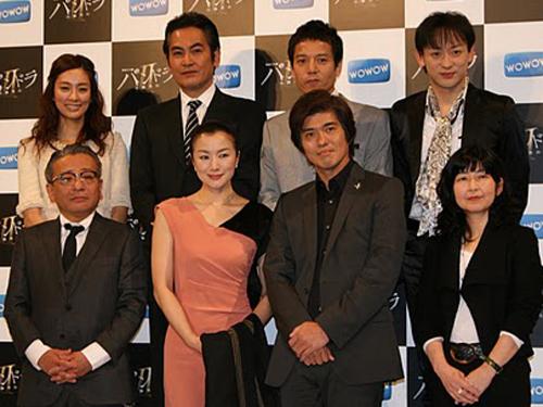 前列左から、河毛俊作監督、鈴木京香、佐藤浩市、脚本家の井上由美子氏、後列左から水川あさみ、宅麻伸、勝村政信、山本耕史