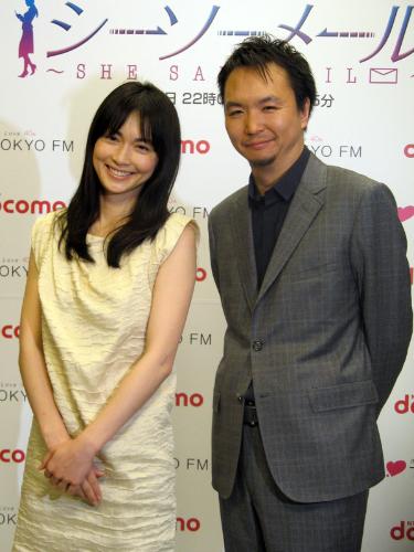 TOKYO FM朗読ドラマ「DOCOMO シーソーメール」でデビュー10年で初めてラジオのレギュラーを務める長谷川京子。右は共演の長塚圭史