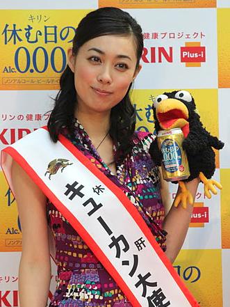 同プロジェクト関連商品で、14日に発売されるノンアルコールビール「休む日のAlc.0・00%」の新CMに出演する吹石。新妻という役について「13歳でデビューし、27歳。妻役をいただいて、大人になったな」としみじみ。CMで使用した九官鳥のパペットを手にはめて取材に応じたが、好きな動物を聞かれると「キリンです」とCMの会社名に絡めて宣伝した。