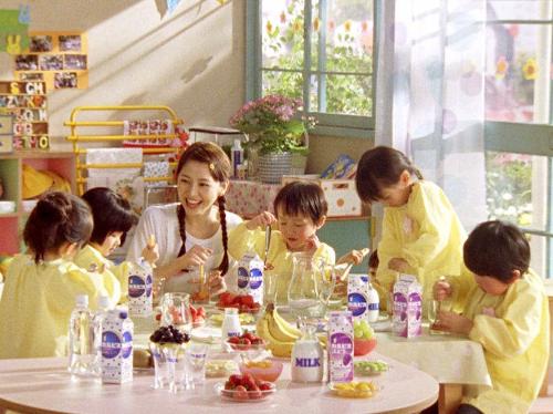 テーマは「カルピス」のいろいろな楽しみ方。♪やってみよう、やってみよう~、世界でひとつのマイ“カルピス”――という軽快な歌に乗って、長澤が扮する保育士と子供たちが教室でいちごミルク「カルピス」作りを体験。子供たちが一生懸命つぶしたいちごに、牛乳と混ぜて造ったミルクカルピスを注ぐと、色鮮やかないちごミルクカルピスが完成する。