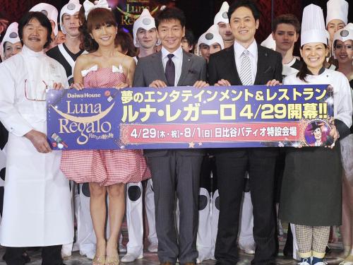 有名シェフの料理とサーカスが楽しめる期間限定の特設シアターレストラン「ルナ・レガーロ~月からの贈り物~」(29日~8月1日)が東京・日比谷にオープンするのを前に記者発表が開かれ、サポーターに就任したお笑いコンビ、くりぃむしちゅー(上田晋也、有田哲平)とはるな愛が一足先に会場を訪れた。
