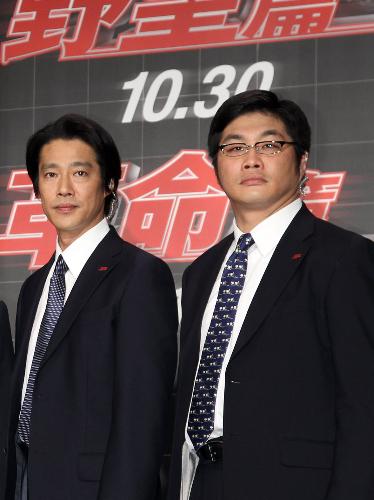 「SP」製作報告会見。フォトセッションに臨む(左から)堤真一、松尾諭