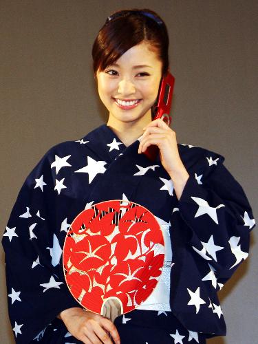 女優の上戸彩(24)が18日、ソフトバンクモバイル2010年夏新商品発表会に出席した。