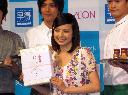 最新機種を手にした上戸は「キレイ! デジカメみたい…」と画像のキレイさに感動しきり。さらに、この日発表された全機種でツイッター対応となっていることもあり、ステージ上で撮影された上戸の画像もリアルタイムでツイッターにアップされるなど、デモンストレーションが行われた。