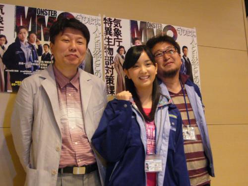 毎日テレビで7日からスタートする特撮ドラマ「MM9-MONSTER MAGNITUDE-」(水曜深夜1・30)の試写会が2日、大阪市内の同局であり、主演ヒロインの一人、石橋杏奈(17)と総監督を務めた樋口真嗣監督(44)、原作の作家・山本弘氏の3人が出席した。