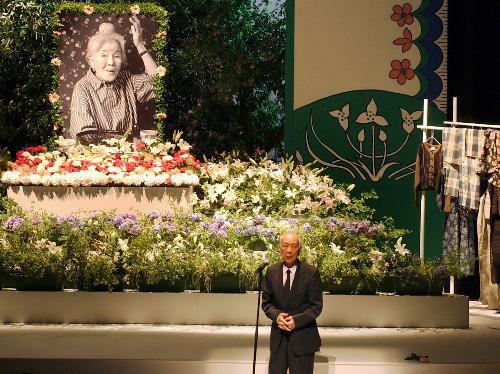 女優北林谷栄さんのお別れの会で、謝辞を述べる劇団民芸代表で俳優の大滝秀治