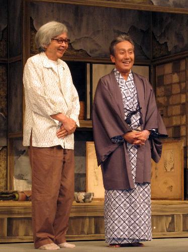 歌舞伎俳優・中村勘三郎(55)が座頭で、同所での公演は2年ぶり。11日には「人情噺(ばなし)文七元結」の公開稽古が行われ、勘三郎と脚本に加筆した山田洋次監督(78)が会見。山田監督は「勘三郎さんは歌舞伎界の寅さんのよう」と演技を絶賛。故渥美清さんと交流があった勘三郎は照れ笑いを浮かべた。