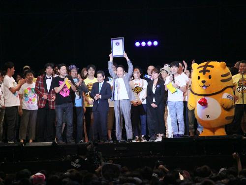 【LIVE STAND 2010】最終日の大トリ、中田カウス・ボタンの漫才が終わると、ギネス・ワールド・レコードの「1日で最もたくさんの芸人が出演している世界一のお笑いイベント」認定式がサプライズで行われた。