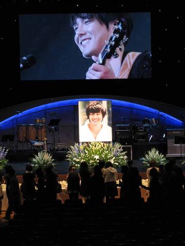 本来なら17、18両日は東京国際フォーラムでヨンハさんのコンサートが開催されるはずだった。献花式は同じホールで行われ、ステージセットが再現された祭壇には愛用のギターが置かれた。千葉県在住の主婦山岸早百合さん(45)は「コンサートで会えると思って楽しみにしていました。まさかこんなことになるなんて信じられない」と、涙を流しながら献花台に白いカーネーションをささげた。