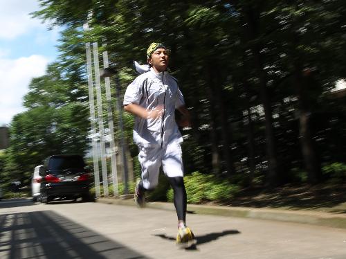 「2カ月近く前から毎日10キロ近く走っている」といい、逃走シーンのためだけでなく「逃亡者らしさを出すための役作りの要素が大きい。だから体重は4キロ近く落ちました」。ただ、すぐに汗が噴き出す真夏のトレーニングは「やっぱ暑いっすね。(横浜高校)野球部時代から走るの嫌いで、今も好きにはなれないなあ」と苦笑い。