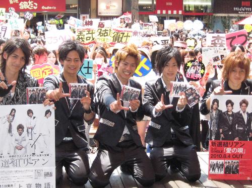 3日から13日間連続の握手会を開始し、この日も2回公演で計約3000人を動員し「2万人と握手する」と宣言。公約を果たせなかった時についてリーダーの森公平(22)は「丸刈りにします。他のメンバーにはさせない」と約束した。