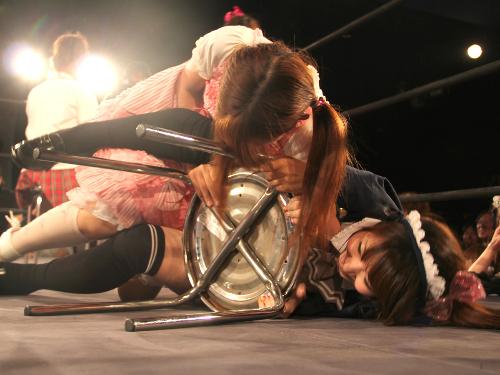 【ザ・キラーコンテンツ!】大トリの第6試合は、出演16人のアイドルやメイドたちによる勝ち残り方式のイス取りゲーム。。最後に残った1つのイスを奪った優勝者には、グラビア誌「BOMB」の単体グラビア出演や雑誌のインタビュー掲載といった“スターへの近道”が与えられるとあって、我先にとイスを争った。