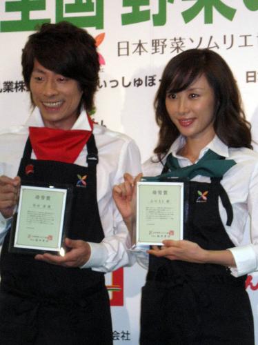 日本野菜ソムリエ協会が主催する「野菜の日(8月31日)」記念イベントが28日、都内で行われ、ロンドンブーツ1号2号の田村淳(36)とタレント山口もえ(33)が参加した。