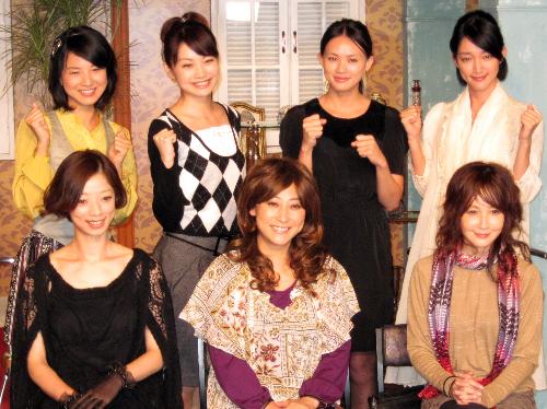 NHKドラマ「祝女」の取材会に出席した(下段右から)YOU、友近、市川実和子ら出演者