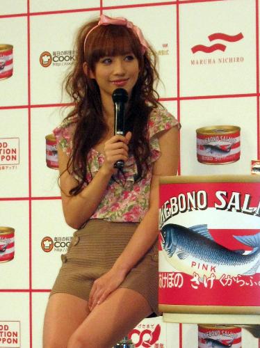 タレントの優木まおみ(30)が14日、都内で行われたマルハニチロ食品の缶詰「あけぼの さけ」の発売100周年イベントに参加した。
