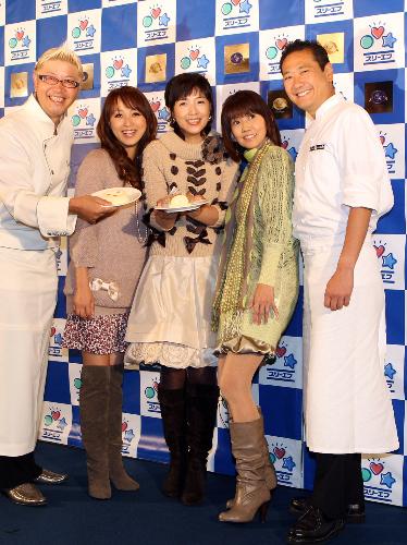 タレントの菊池桃子(42)渡辺美奈代(41)松本伊代(45)が27日、都内で、コンビニエンスストア「スリーエフ」の新作スイーツ発表会に出席した。