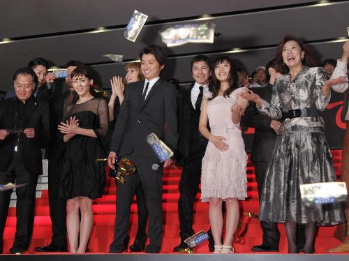 藤原竜也(28)、綾瀬はるか(25)、北大路欣也(67)ら、16日公開の映画「インシテミル」(監督中田秀夫)に出演するホリプロ俳優陣10人が7日、都内で行われた試写会で舞台あいさつした。