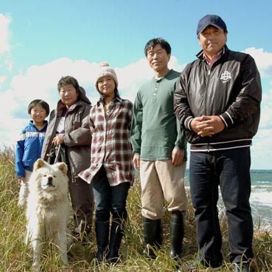 「ぶさかわいい(不細工だけどかわいい)」と写真集が発売されるなど、人気の秋田犬「わさお」が出演する映画のロケ現場が18日、青森県鰺ケ沢町で報道関係者に公開され、飼い主役の女優薬師丸ひろ子(46)らが記者会見した。