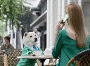 お父さん犬 金髪美女とおしゃれデート?