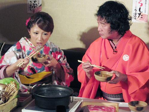 黒毛和牛の高級部位を自ら試食し「おいしい!通い詰めたい」と自画自賛。私生活では俳優中村昌也(24)と交際中で「鍋のようにアツアツ?」と聞かれ「あったかく過ごさせていただいております。結婚は今のところないけど、30歳までには子供が欲しい。それまでには」と笑顔を見せた。