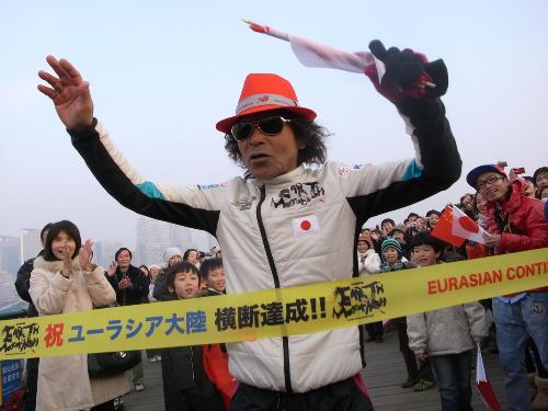 同日午後、青島在住の日本人約100人の声援を受けながらゴールテープを切った寛平は「めちゃうれしい」を連発。途中で前立腺がんと診断され、治療のため中断を強いられた苦労を思い出してか、この日は走りながら「ずっと涙が出た」。