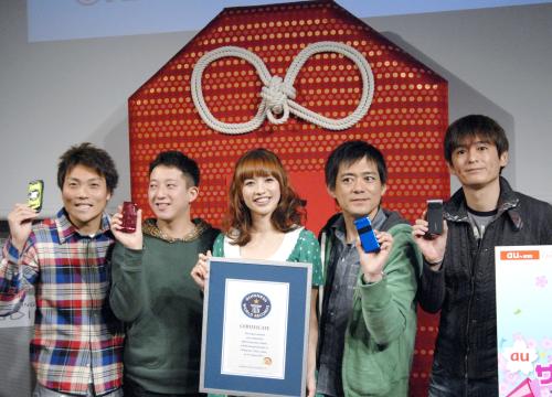 タレントの優木まおみ、お笑いコンビの博多華丸・大吉らが13日、東京都内で開かれたKDDIの受験生を応援するイベントに登場。ギネス世界記録に認定された高さ2・3メートルのお守りの前で、優木が「自分に自信を持って頑張ってください」とエールを送った。