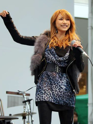 野外ステージの寒さをものともしない青いヒョウ柄のミニワンピに、ライダースジャケットとファーベストを羽織って登場。アコースティックバンドの演奏に乗せ、工藤静香のカバー曲「恋一夜」など3曲を熱唱した。