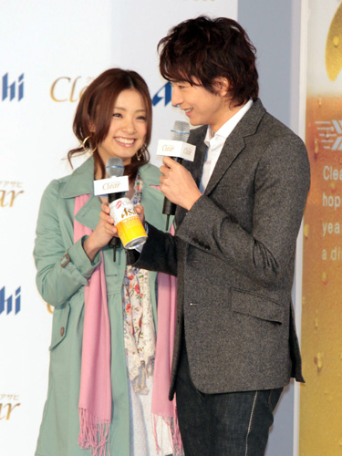 女優の上戸彩(25)と俳優の向井理(29)がアサヒビールの「クリアアサヒ」の新CMに出演することになり9日、都内で会見を行った。
