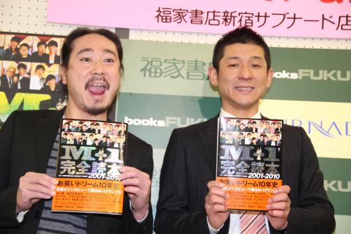 お笑いコンビ「笑い飯」が12日、都内で「M―1完全読本2001-2010」(ヨシモトブックス、1200円)の発売記念イベントを行った。
