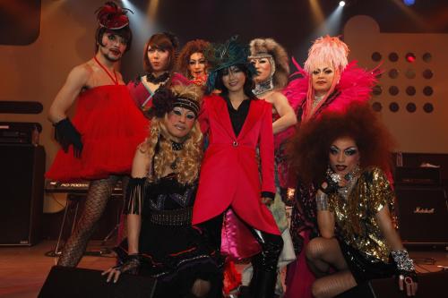 「ドラァグクイーン」と呼ばれる仮装したゲイ集団がケーキを持って祝福。相川は現在、東京・新宿二丁目などゲイの街で大人気。昨年12月に同性愛者を描いた曲「Girl Friend」を発表し、「ロックって男の子のファンが多いけど、女の子もライブに来てくれるようになってうれしい」と話した。