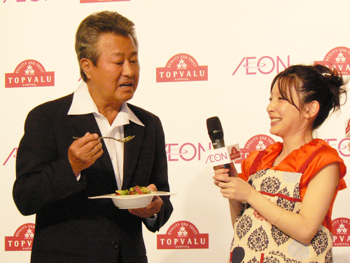 俳優の梅宮辰夫(72)と女優の奥菜恵(31)が24日、都内でイオンの食料品ブランド「トップバリュ」の新商品発表会に出席した。