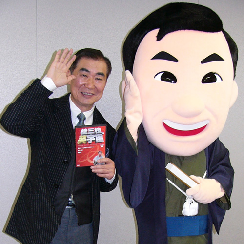 能生活45周年を迎え、着ぐるみ「三枝くん」とともに会見した桂三枝