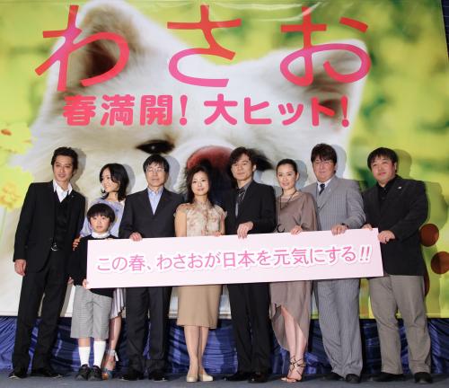 この日は、わさおは駆けつけられなかったが、飼い主役を演じた薬師丸ひろ子(46)は「離れていても、わさおと一緒にいる気持ちがします。犬と人間も心が通じ合うということが世界の皆さんに伝われば」と笑顔。錦織監督は「わさおの癒やしがアジアを巻き込んでいくと思うと、うれしい限りです」と喜んだ。