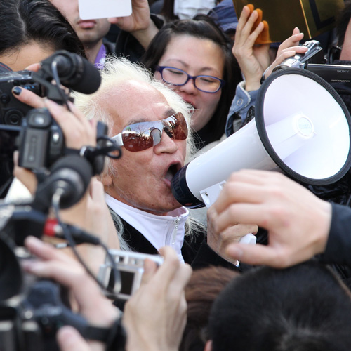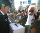 ロック歌手の内田裕也(71)が19日、渋谷駅ハチ公像前で被災者支援の募金を呼びかけた。