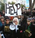 節電に協力しようと手にはアコースティックギターと拡声器。ジョー山中(64)や白竜(58)らとともにジョン・レノンの「パワー・トゥ・ザ・ピープル」を合唱し、被災地にエールを送った。