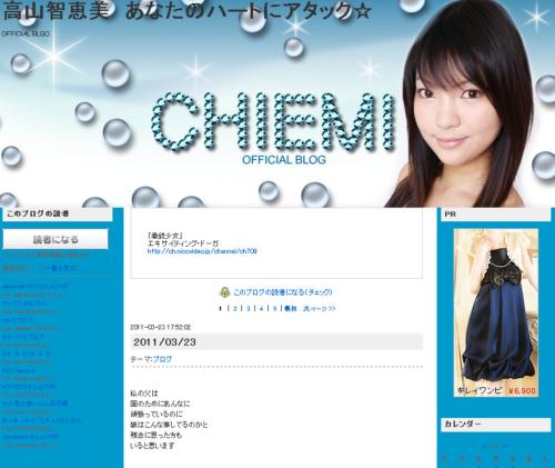東京消防庁第8方面ハイパーレスキュー隊の高山幸夫総括隊長の次女で、グラビアアイドル・高山智恵美のブログ