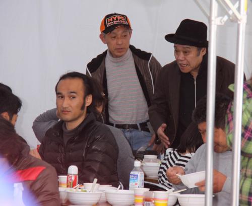 「がんばっぺ!!ふるさと」の寄せ書きを手に被災者にエールを送る西田敏行(前列左から2人目)ら参加者 がんばっぺ福島!西田敏行、中畑清氏ら味スタで炊き出し ギャラリーで見る この記事のフォト 2011年03月28日の画像一覧 もっと見る 2011年03月28日の画像をもっと見る