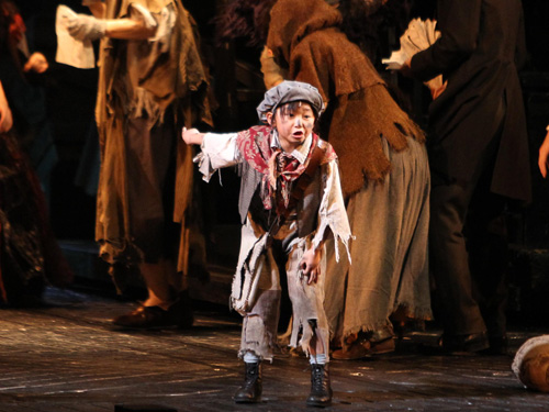 人気子役の加藤清史郎(9)が、歴史に翻弄(ほんろう)される子どもガブローシュ役で舞台デビュー。同年代の子どもが大勢被災していることから心を痛めているようで「僕も節水、節電を心がけてます」と被災者にメッセージを送った。仙台市出身の森公美子(51)は友人が死亡したといい、「皆さんの温かい言葉は被災者の励みになります…」と号泣した。8日開幕。