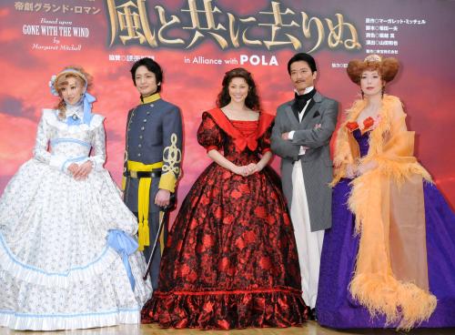 スカーレットを無償の愛で包もうとするバトラー(寺脇康文)と、スカーレットが思いを寄せる名家出身のアシュレイ(岡田浩暉)。自身の好みはどちらと聞かれた米倉は「スカーレットとは逆かも。そんなことないか? 思わずバトラーさんと遊んじゃうんですもんね。男の人だったらどっちでもいいかな」と言ってしまい大笑いした。大阪公演は6月3~12日、大阪市の梅田芸術劇場。
