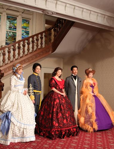舞台衣装に身を包み会見を行った(左から)紫吹淳、岡田浩暉、米倉涼子、寺脇康文、高橋ひとみ