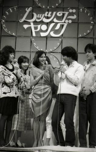 1984年、NHK「レッツゴーヤング」に出演した田中好子さん(中央)