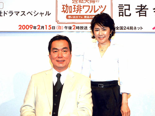 2009年2月、朝日系「逆転夫婦の珈琲ワルツ~想い出カフェ閉店の危機!!」で夫婦役を演じる長塚京三と田中好子さん