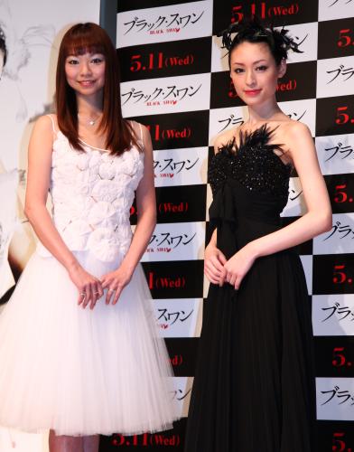 映画「ブラックスワン」試写会トークショーに出席した栗山千明(右)とバレリーナの上野水香