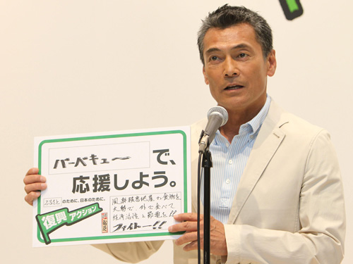 「復興アクション」キャンペーンは東日本大震災の被災地の復興を日本全体が一体となって推進していくため、内閣府がこの日スタートしたもの。イベントには枝野幸男官房長官も出席した。同キャンペーンには日本百貨店協会(会長=鈴木健夫高島屋社長)をはじめとする小売関係団体、農林水産業や輸送・観光関係の団体など60を超える“応援団”が参画している。