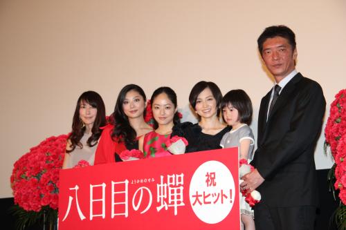 作家・角田光代のベストセラー小説を原作にした映画「八日目の蝉」の初日舞台あいさつが29日、都内で行われ、井上真央(24)ら主要キャストが登場した。