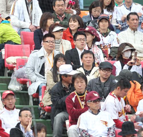 Kスタでの観戦は「3~4年ぶり」。今季は20年来の友人の田淵幸一氏(64)がヘッド兼打撃コーチとしてチームに加わったため、沖縄・久米島キャンプを激励に訪れるなど、球団への思い入れは例年より強い。そんな中で震災が発生。チームには復興のシンボルや起爆剤として期待するものが増えた。