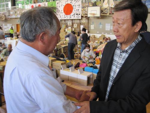 参加者はジュディ・オング(61)、山本リンダ(60)、金沢明子(56)、清水アキラ(56)、ジョン健ヌッツォ(45)との計6人。東北新幹線で入った仙台市から、マイクロバスで岩沼市と名取市の3避難所を回った。