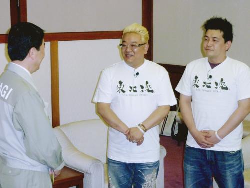 2人は震災発生当日の3月11日、震度6弱を観測した宮城県気仙沼市でテレビ番組のロケ中に被災。ブログで被災地の情報を発信し続け、同16日には義援金を集めるための口座「東北魂義援金」を開設。被災地をたびたび訪れ、今月20日には都内で「東北魂チャリティーライブ」を行うなど支援に力を入れてきた。